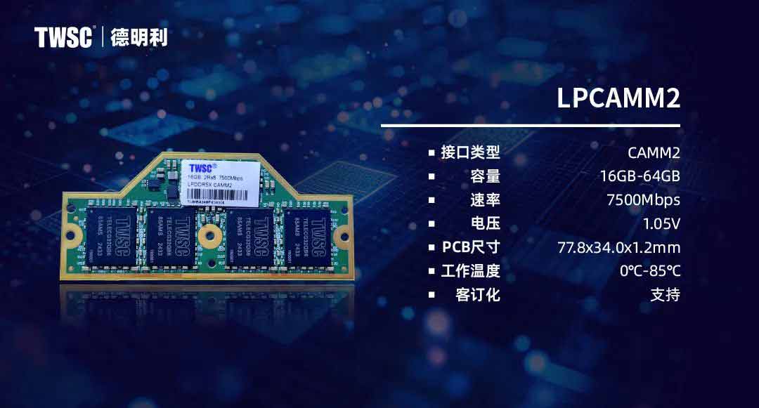 德明利LPCAMM2專為高性能計算、AI處理、超薄筆記本和移動設(shè)備設(shè)計,數(shù)據(jù)傳輸速率可達(dá)到7500Mbps,運(yùn)行功耗降低58%,待機(jī)功耗降低80%,通過模塊化設(shè)計減少60%空間,提供了更高的帶寬和雙通道支持,支持用戶輕松升級和維護(hù)內(nèi)存,適用于需要高效率和緊湊設(shè)計的現(xiàn)代計算環(huán)境,成為支持本地AI大模型運(yùn)行的關(guān)鍵組件。
