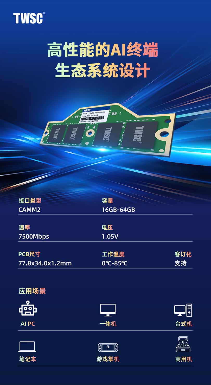 AI引領(lǐng)數(shù)據(jù)洪流,重塑人機交互,PC升級為智能行動派。德明利LPCAMM2賦能高性能AI終端應(yīng)用以領(lǐng)先科技為端側(cè)AI的輕巧與強悍助力,這是智能終端的新嘗試,更是存儲"next level新階程探索。